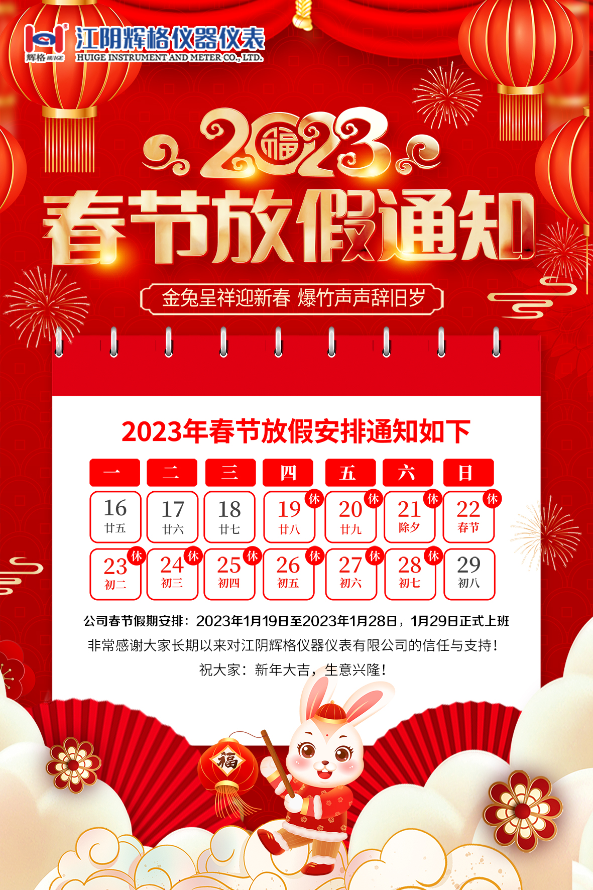 2023年春节放假通知
