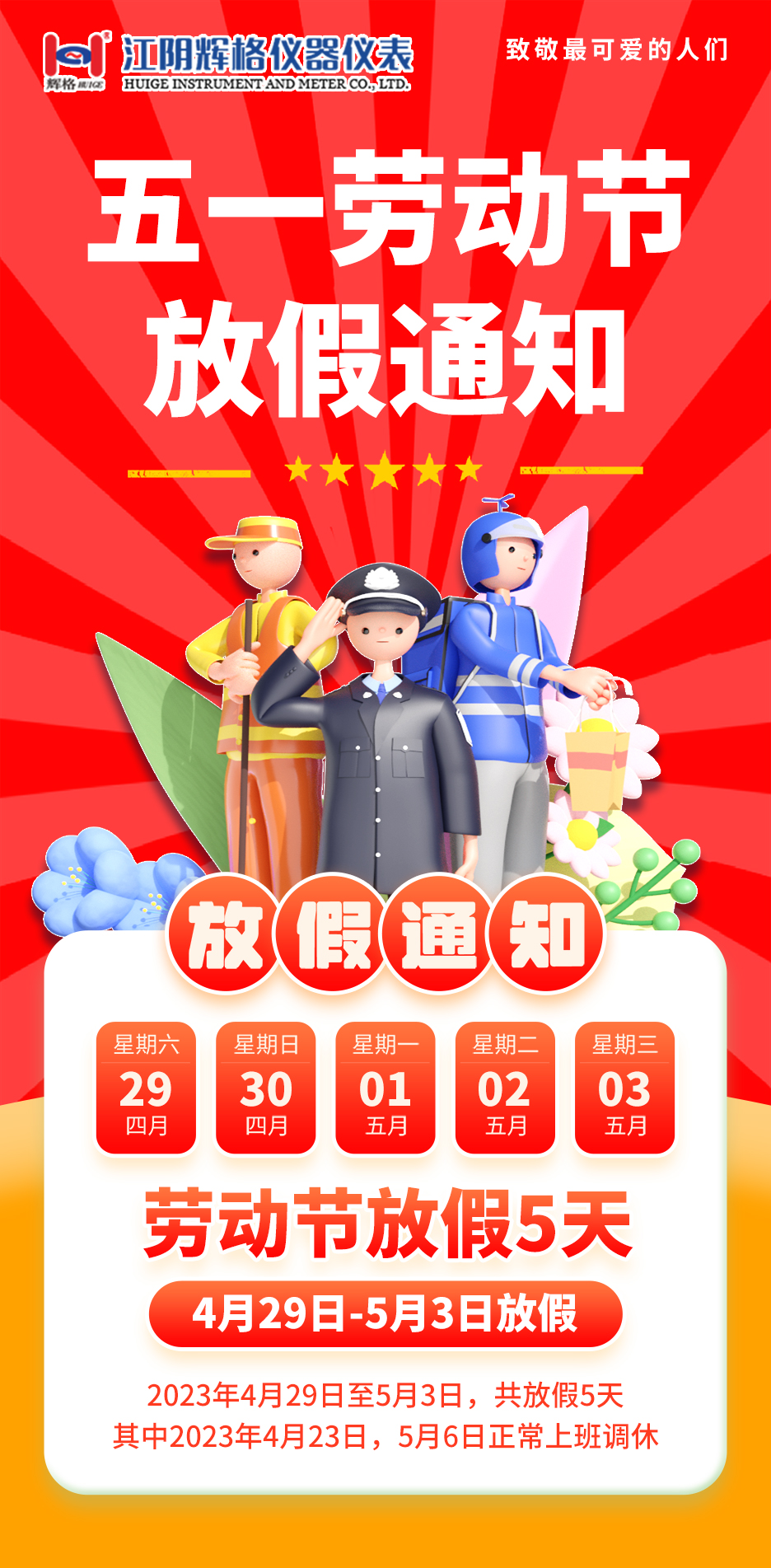 五一放假通知