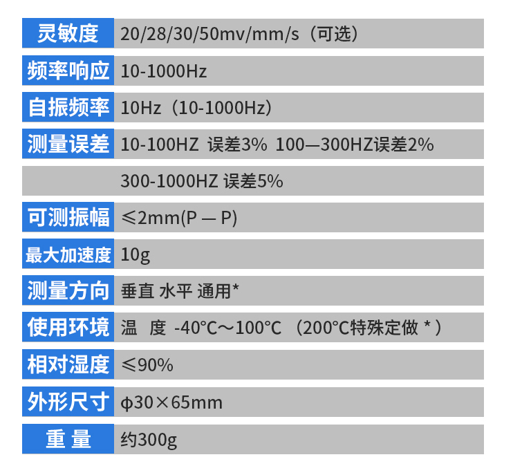 HG-ST-3振动速度传感器主要安装在各种旋转机械装置的轴承盖上(如汽轮机、压缩机、风机和泵等)。它是由运动线圈切割磁力线而输出电压的电磁式传感器,因此具有工作时不需要供给电源、安装容易等特点。