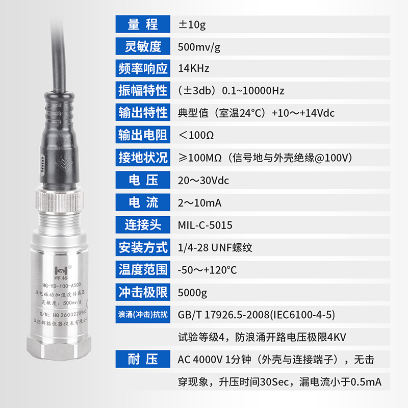 HG-YD-100-A500压电振动加速度传感器HG-YD-100-A500压电振动加速度传感器HG-YD-100-A500压电振动加速度传感器